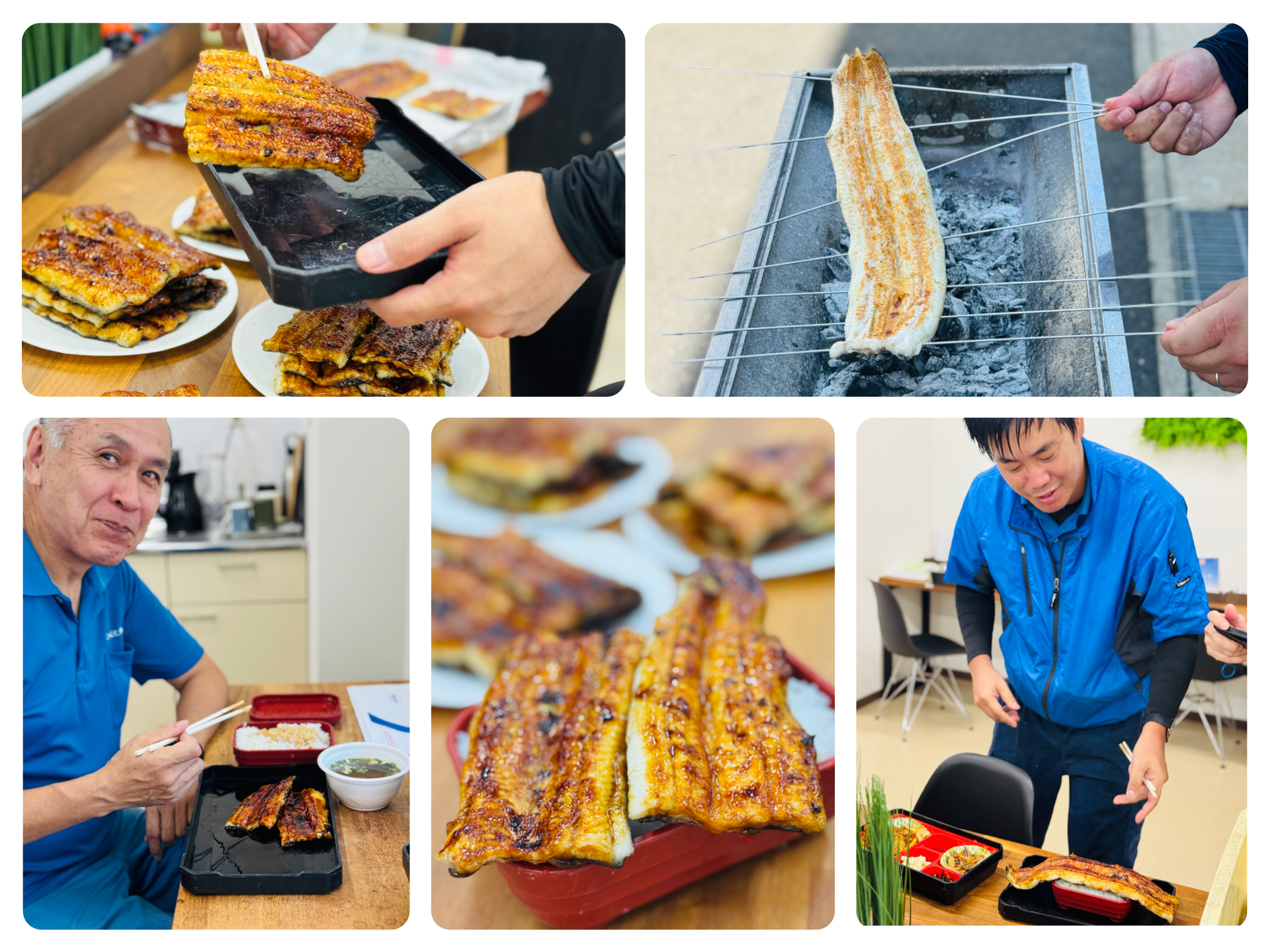 鰻の調達から、捌き、串打ち、焼き上げまですべて社員の手で行われ、心のこもった美味しい鰻をみんなで味わいました。